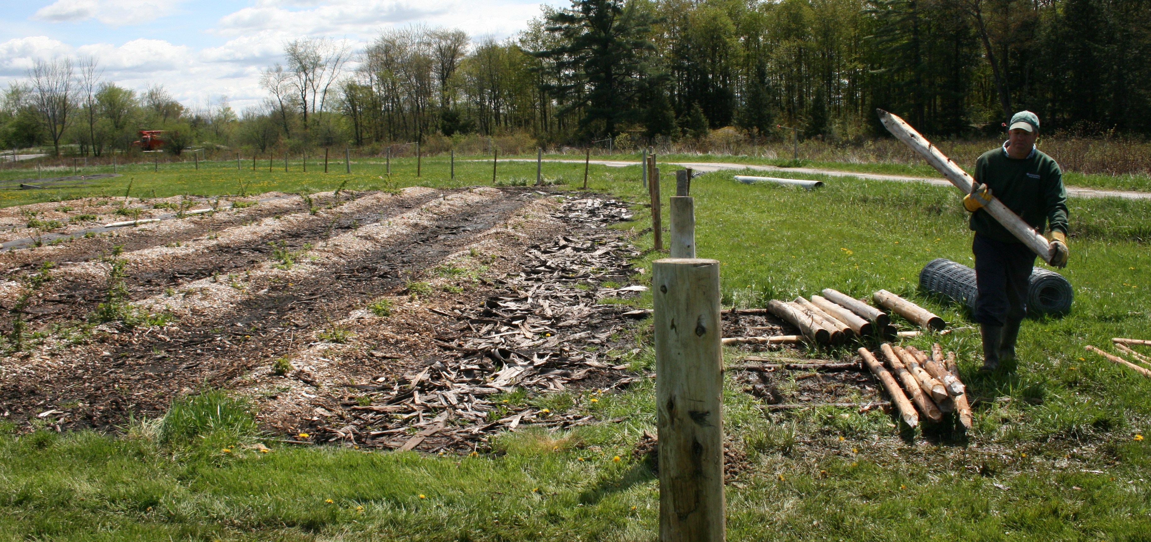 Immediately after planting our blueberry plants I became very nervous about waking up some morning to find them half or all gone courtesy of the beavers that live about 200 feet away. Living on the water is paradise, but there are some boundary lines repeatedly crossed by nature. The beavers need to chew, I get that. Although I haven’t researched it, my hunch is they don’t really care about the delicious blueberries that will grow, but they can smell a yummy tender tree/plant with fresh leaves a mile away! Hopefully this fence will make for good neighbors.